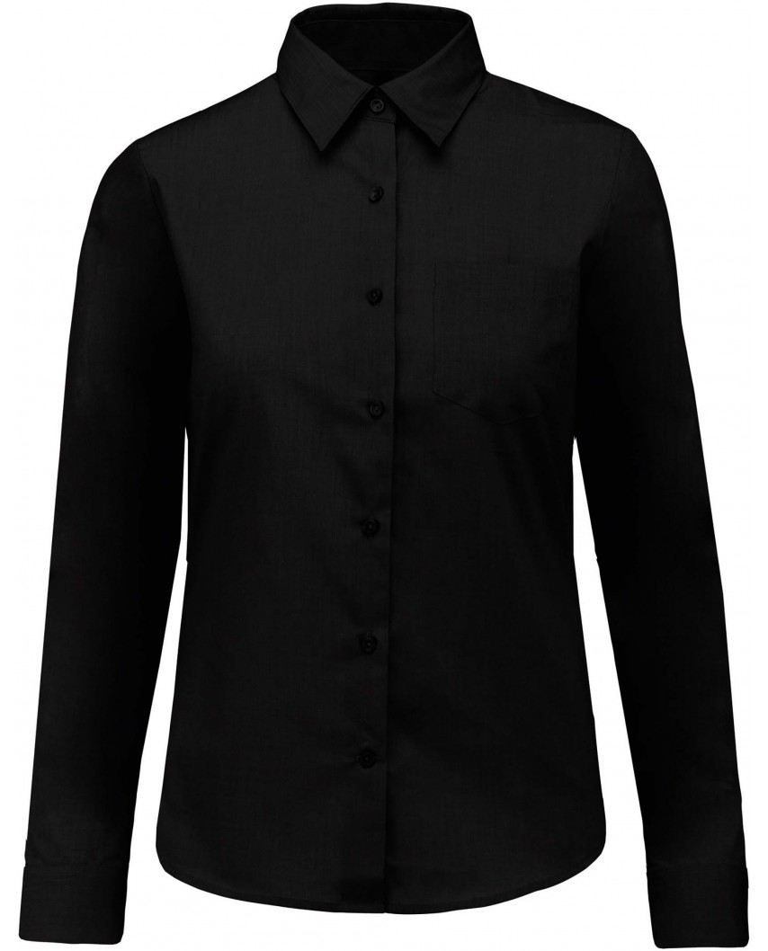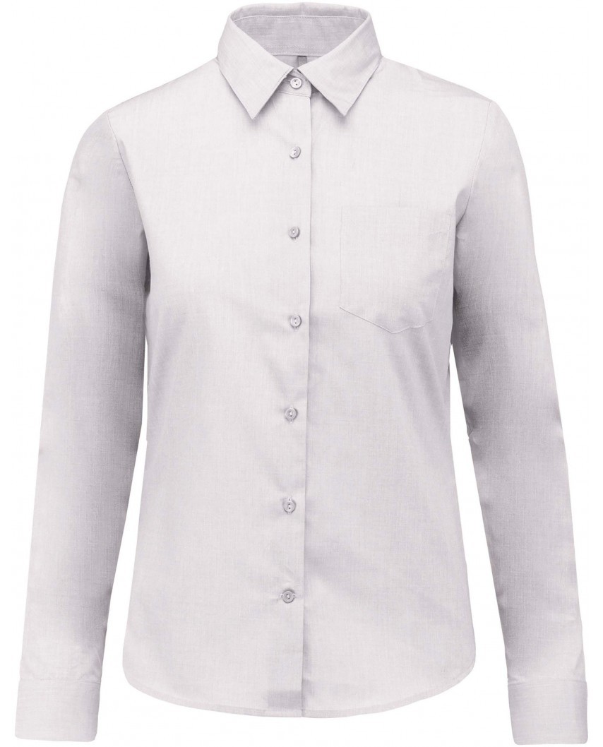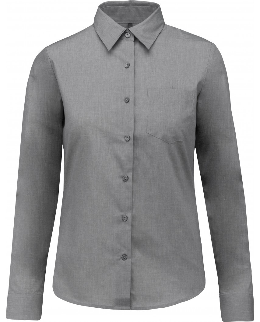 Chemise femme (chemisier) manches longues coloré intemporelle, composée de 65% polyester / 35% coton. Tissu popeline. Entretien facile. Col non boutonné. Boutons ton sur ton. Poche poitrine côté gauche en V. Poignet réglable à angles arrondis avec patte de manche indéchirable. 1 bouton de rappel. Bas arrondi.