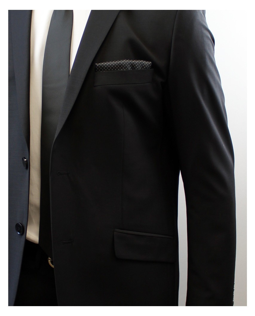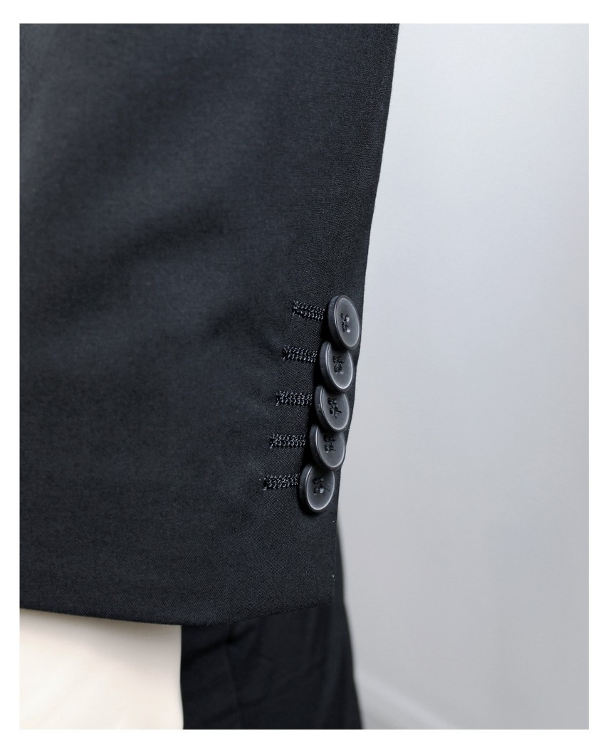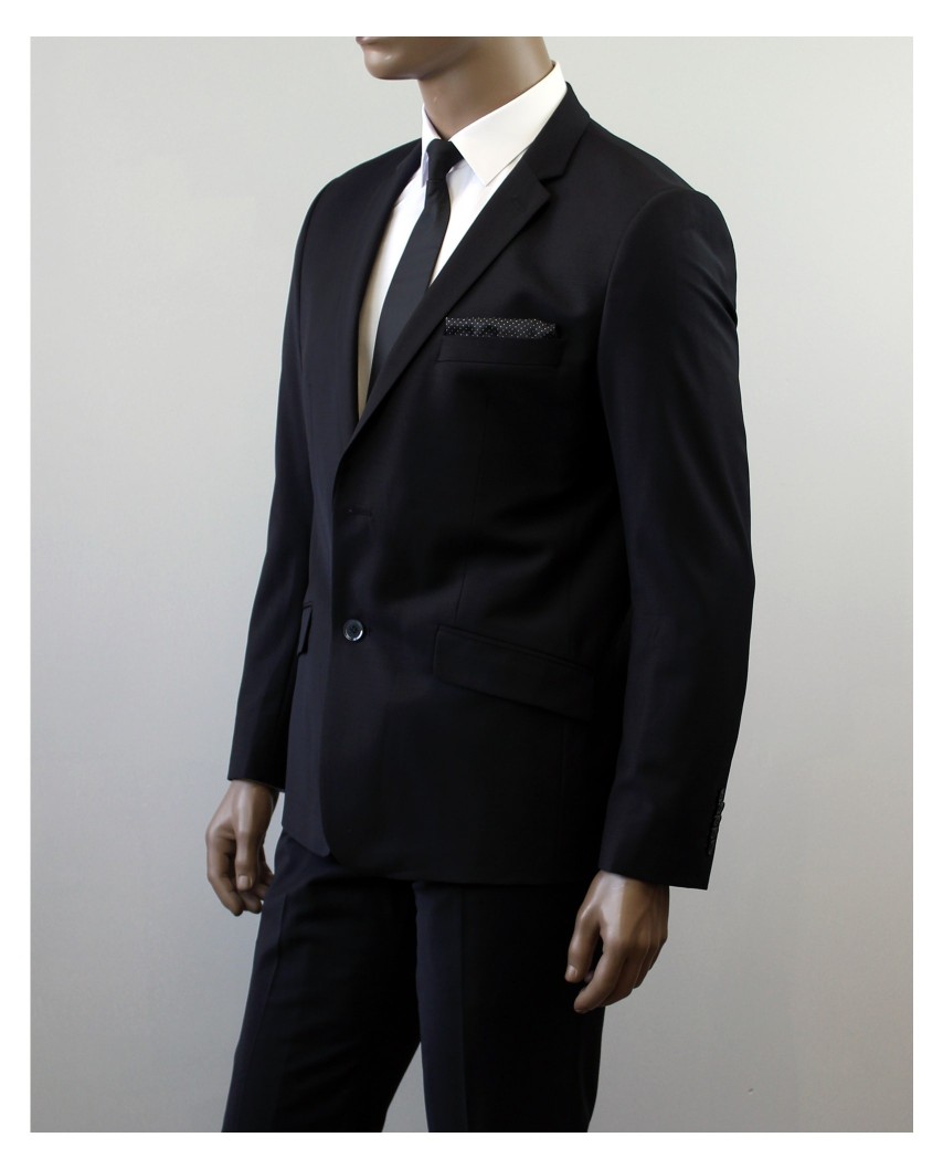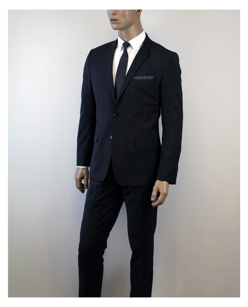 Magnifique costume noir Prestige en Laine Polyester Lycra pour affirmer un désir fort de se démarquer tout en restant sobre et élégant.