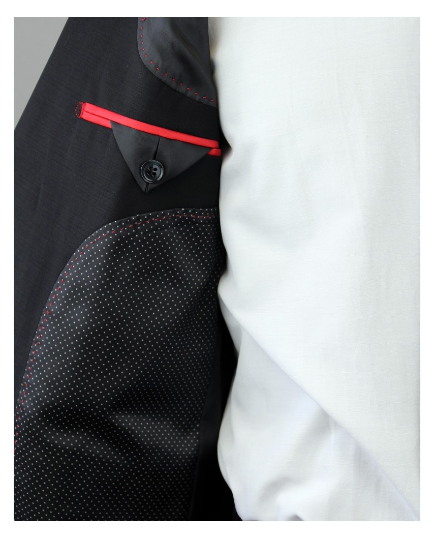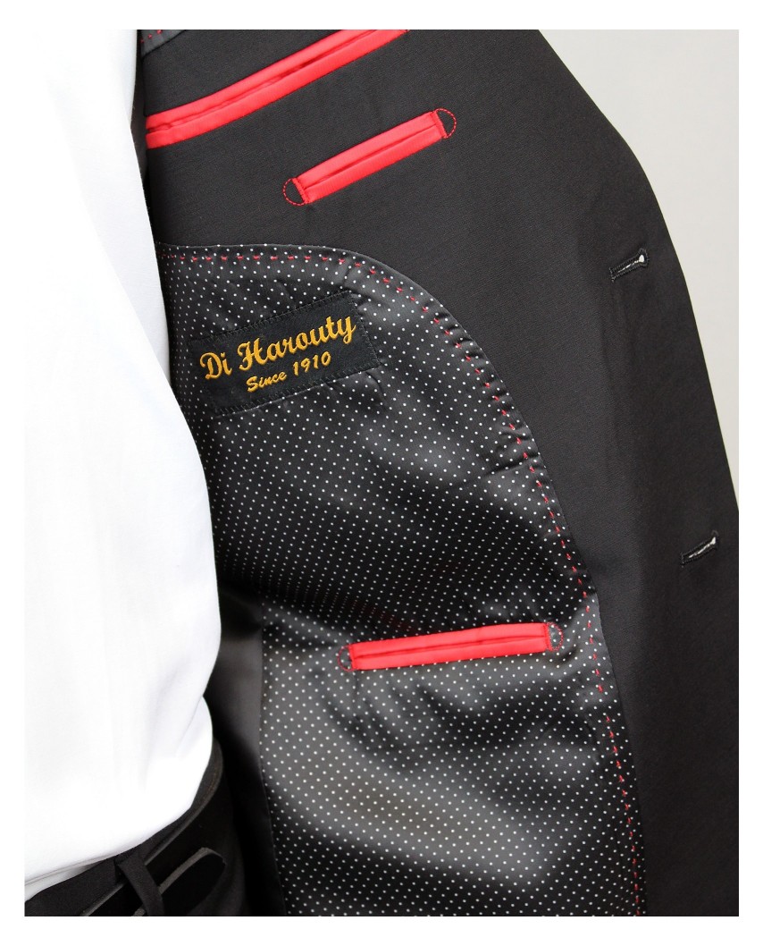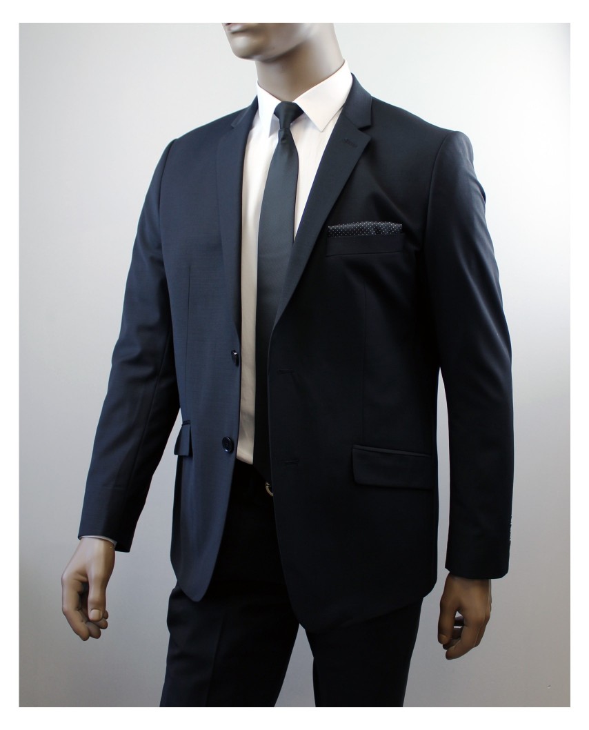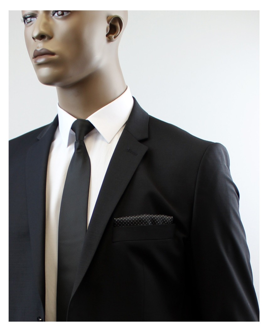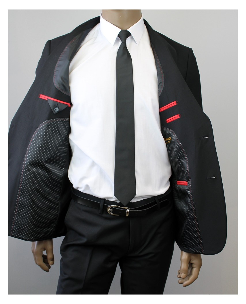 Magnifique costume noir Prestige en Laine Polyester Lycra pour affirmer un désir fort de se démarquer tout en restant sobre et élégant.