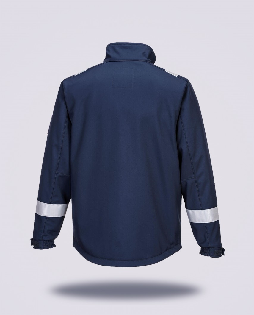 Veste softshell ignifugée Modaflame multi-normes. Protection ATEX, respirante, antistatique et personnalisable pour entreprise ou industrie.
