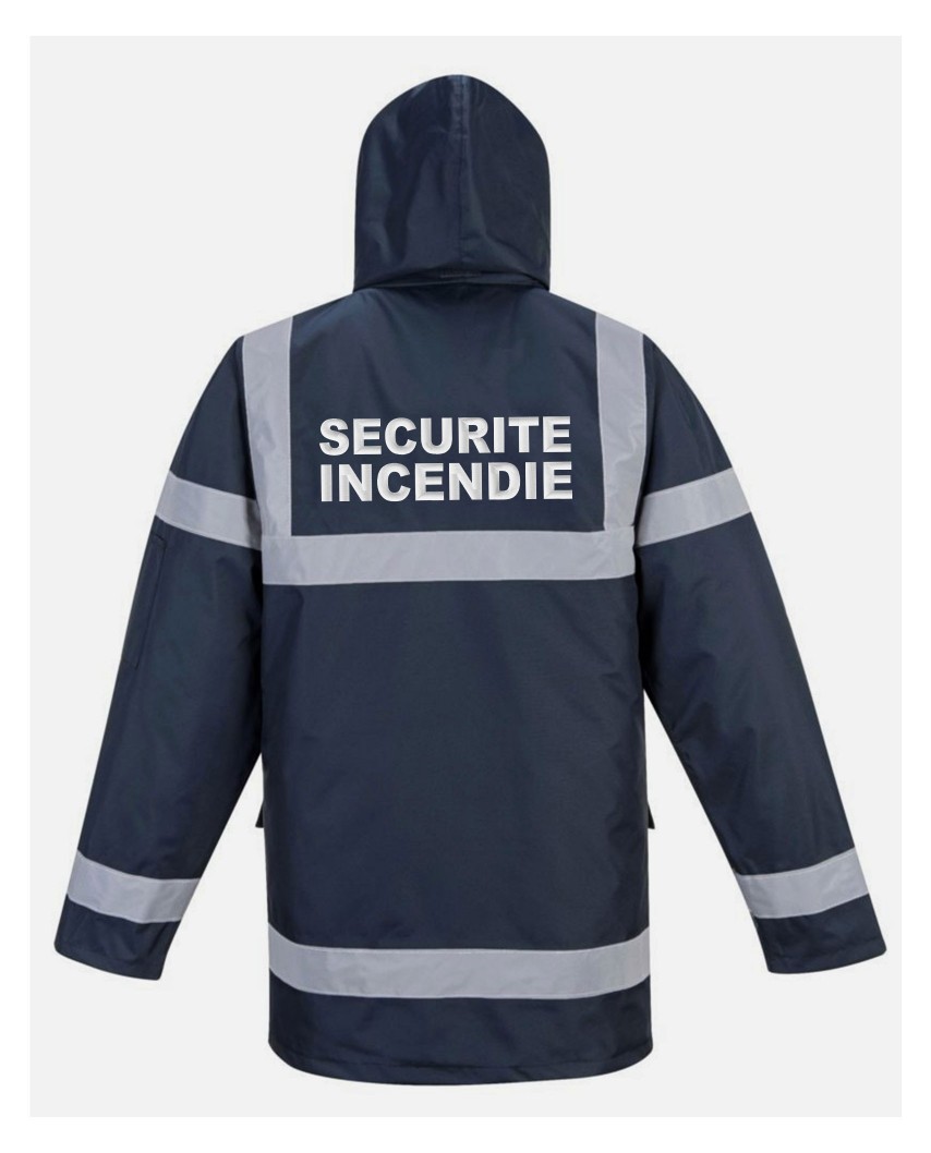 Parka Marine Sécurité incendie brodée 100% polyester doublée avec bandes rétro-réfléchissantes.