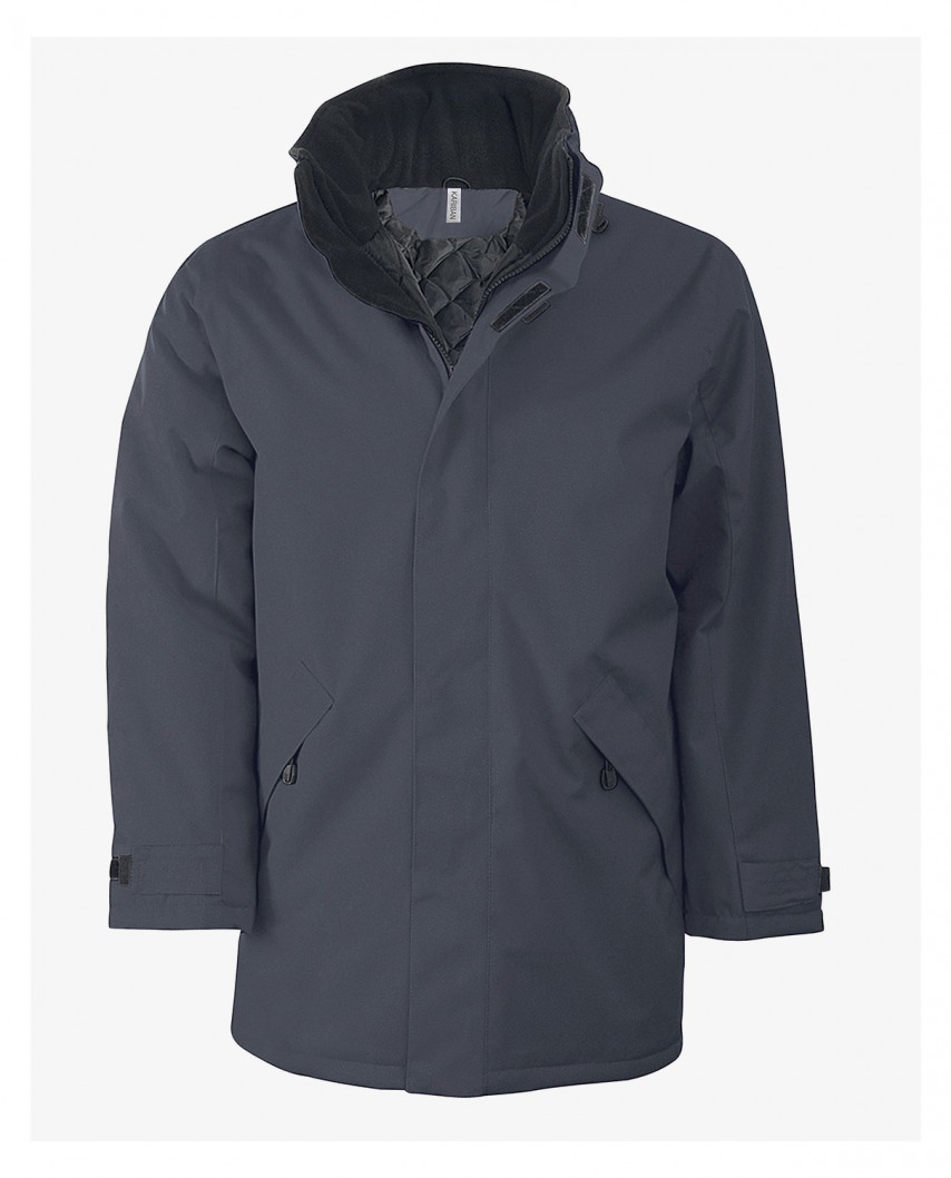 Parka personnalisée pour entreprise, association ou groupe. Disponible en plusieurs couleurs. Broderie, flocage ou liserés de couleur pour une tenue à votre image.