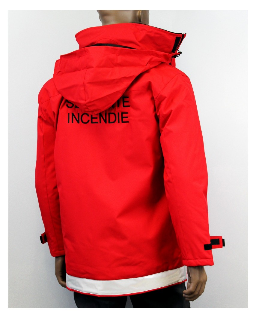 Parka Sécurité incendie brodée 100% polyester doublée avec bande rétro-réfléchissante basse.