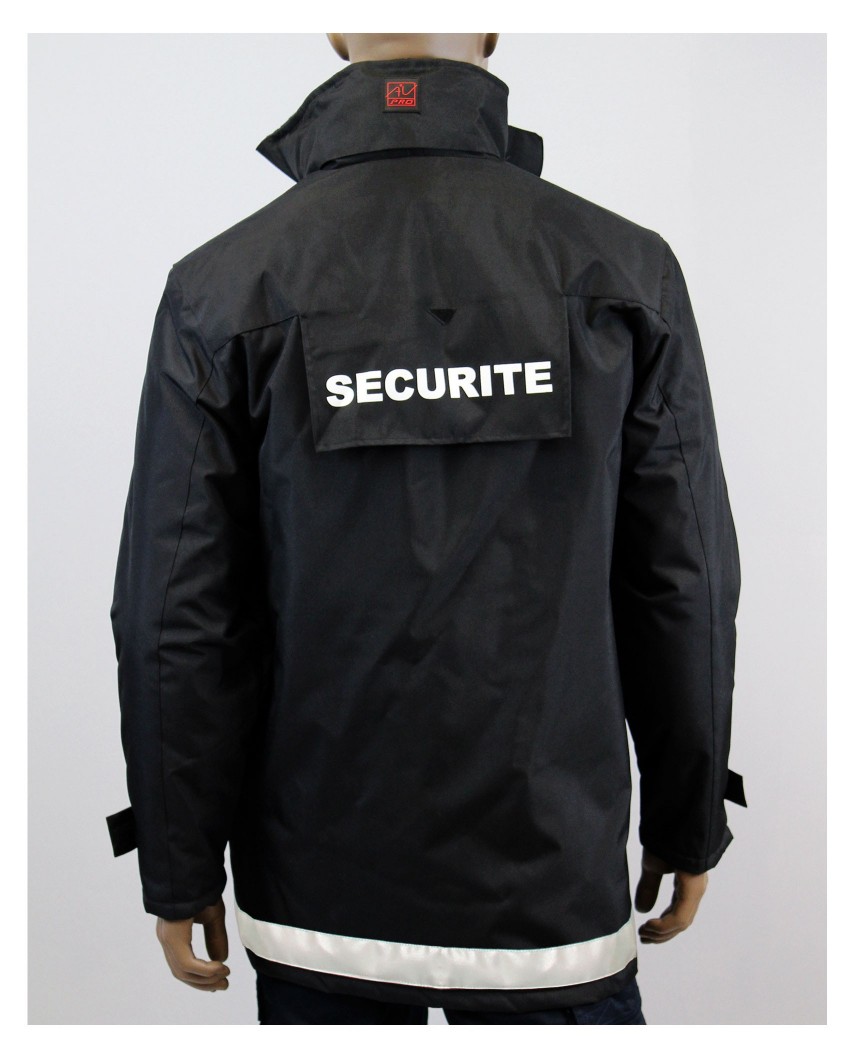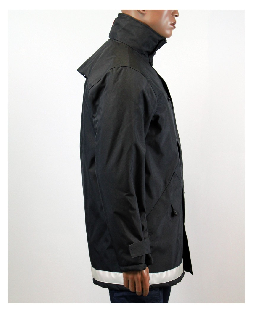 Parkas noirs flag Sécurité Dos et Poitrine impression blanc + bande retro-réfléchissante en bas du parka. 100% polyester oxford, intérieur polyester matelassé