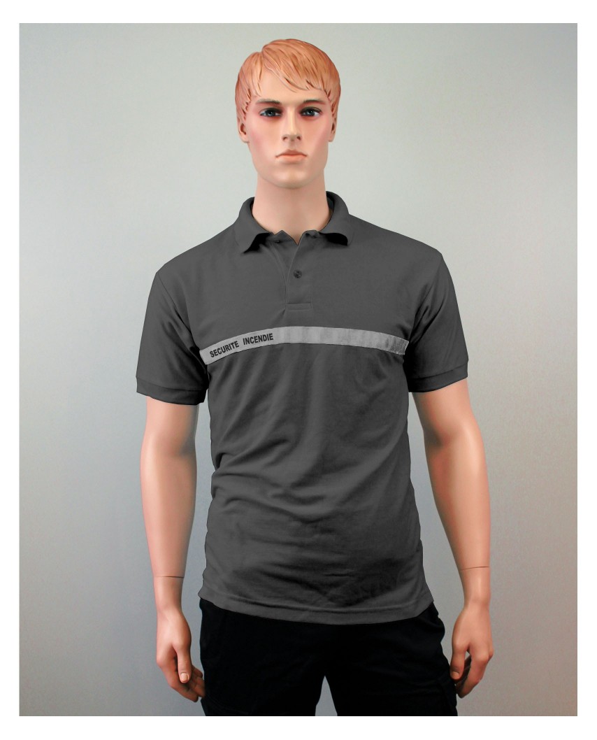 Polo SSIAP gris souris bande sécurité incendie grise avec broderie en opposé coeur.