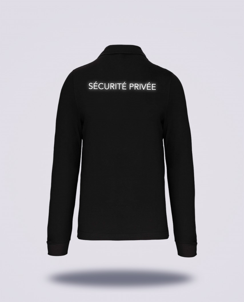 Polo noir manche longue respectant la nouvelle réglementation pour les agents de sécurité privée.